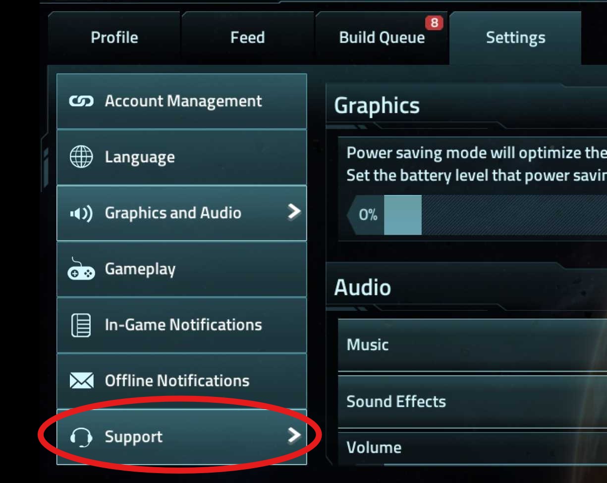 2. Click on Settings, then on the bottom left click on Support, then Support button.