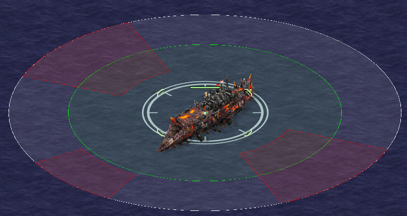 Note: This Boss has 3 layers of mortar weapons; long range with a narrow minimum range band, four directional arc mortars on the front, back and sides, and finally autofiring short range mortars. Stay in the safe zones between the arcs to avoid damage.