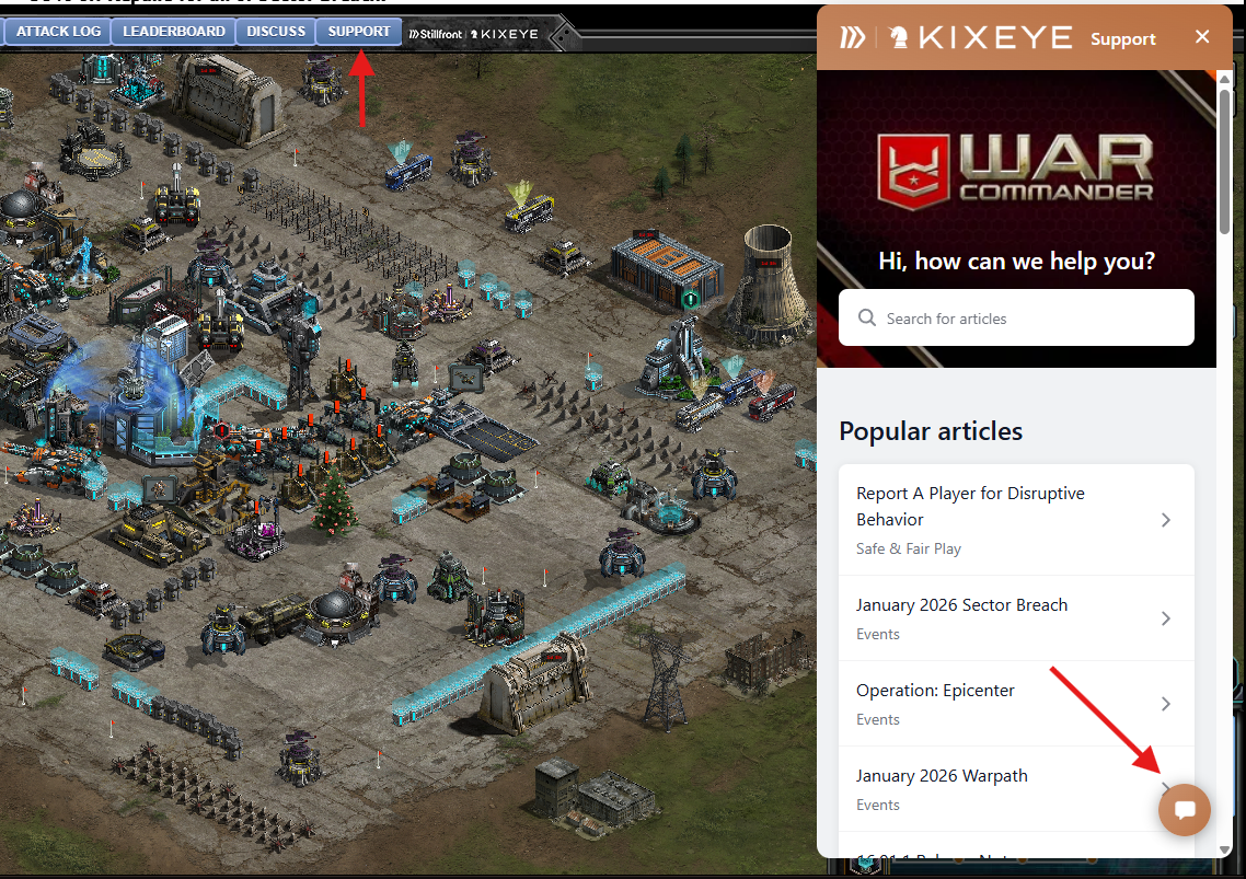 - Click on the Support button above the game.