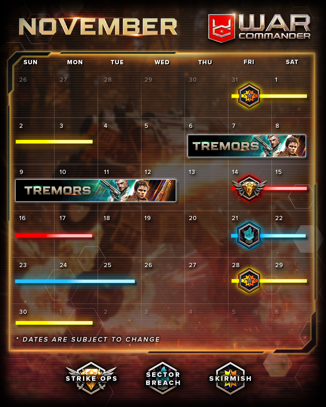 Dates and Events are subject to change