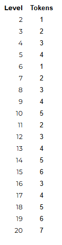 Levels 2-10 require 2 tokens each.