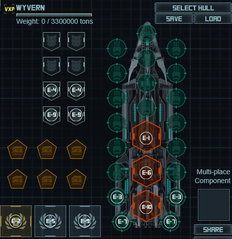 - 장교 슬롯 3개가 포함되어 있으며, 첫 번째 슬롯에서는 강력한 선장을 장착할 수 있습니다. (이 슬롯은 E2, E5, E8에서 잠금 해제됩니다)