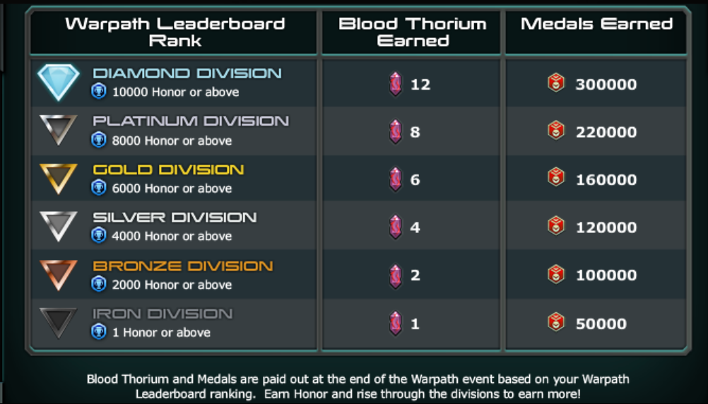Cada Ataque PvP renderá pontos para a trilha. Cada nível que você alcançar no ataque desbloqueará um baú que concede medalhas, com o baú final também concedendo Tório Sanguíneo.