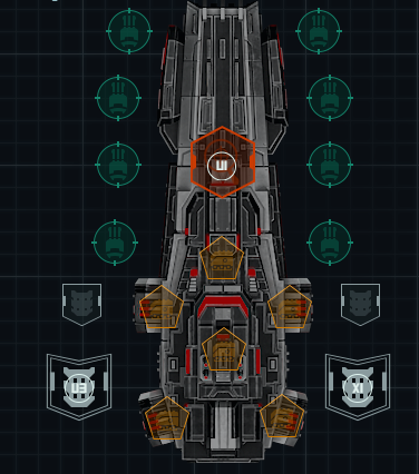 “支配者”号配备有 8 个武器槽、2 个装甲槽、6 个特殊槽、2 个重型装甲槽(分别在 U3 和 X1 解锁)以及 1 个 CIC 槽(在 U1 解锁)。